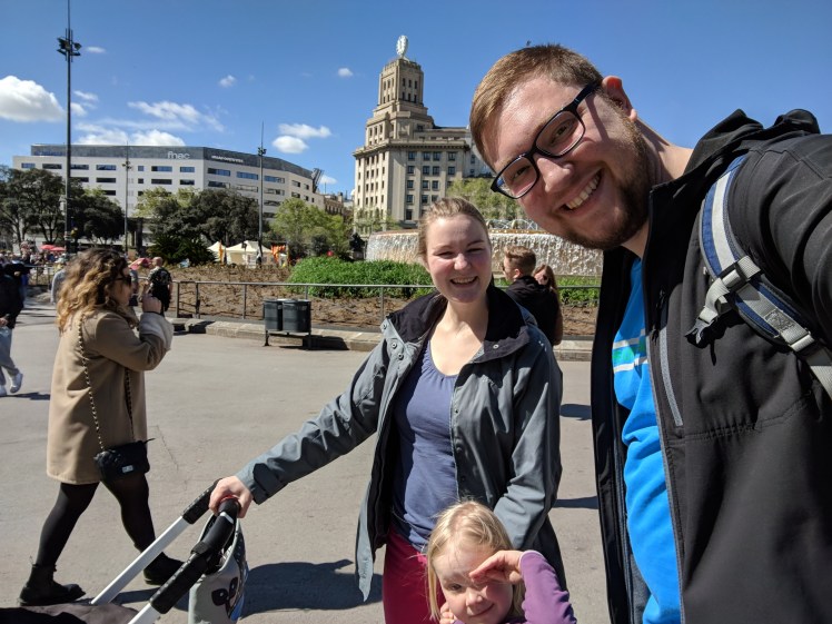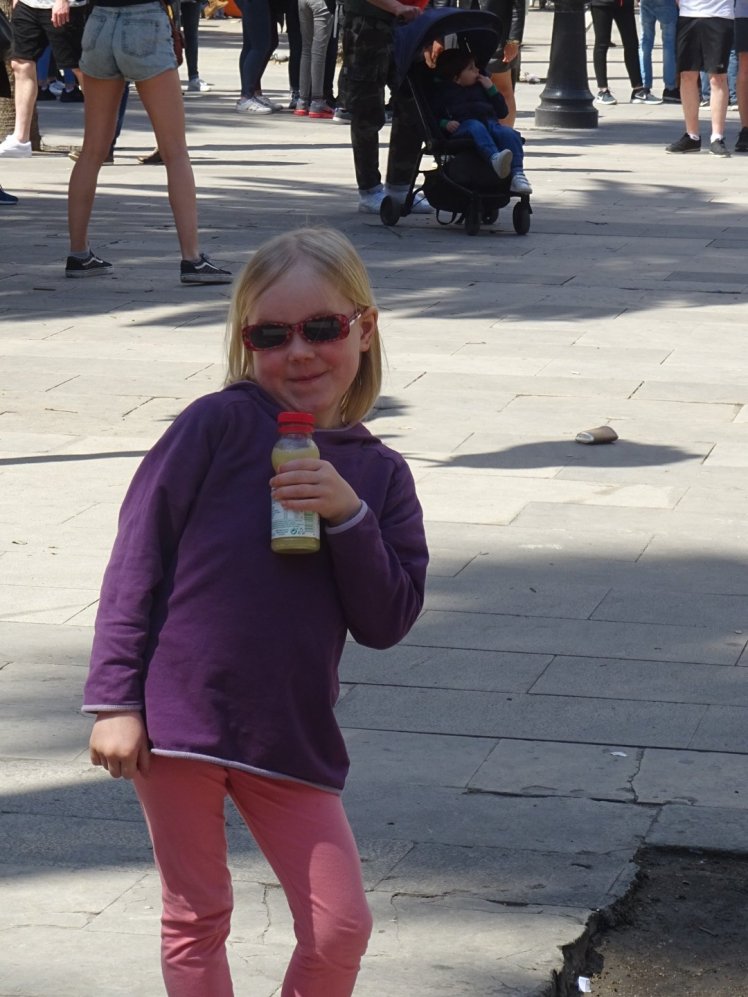 Wir schlenderten etwas durch Barcelona, guckten uns die Straßen und diverse Plätze an. Nachdem wir uns die Basilica de Santa Maria von außen und nach einem Blick auf die Schlange dann nicht mehr von innen ansahen, gingen wir zu Fuß mit ein paar Spielplatz Stopps zur La Sagrada Familia. Wir hätten diese gern noch mal besichtig, allerdings war bei Amélie die Luft raus.