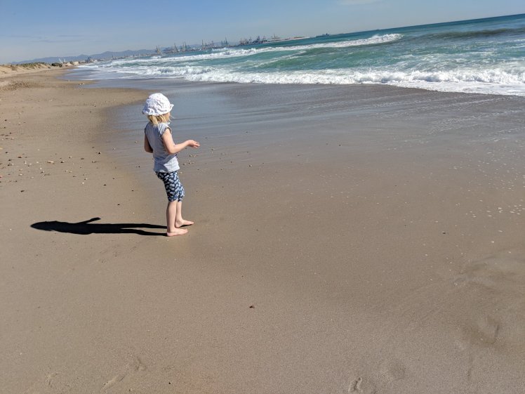 Vom Strand aus konnten wir bis zum Hafen von Valencia sehen.